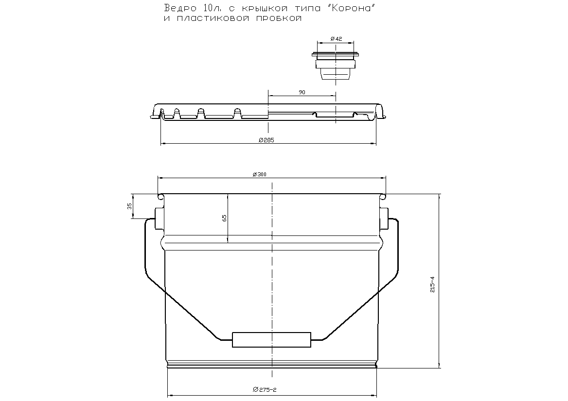 Ведро с крышкой типа "Корона" и пластиковой пробкой