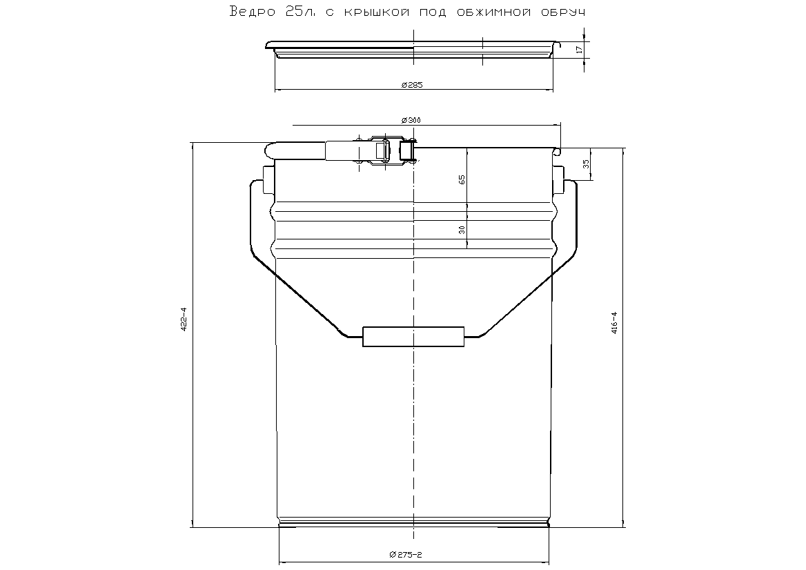 жестяное ведро 25 литров с крышкой под обжимной обруч