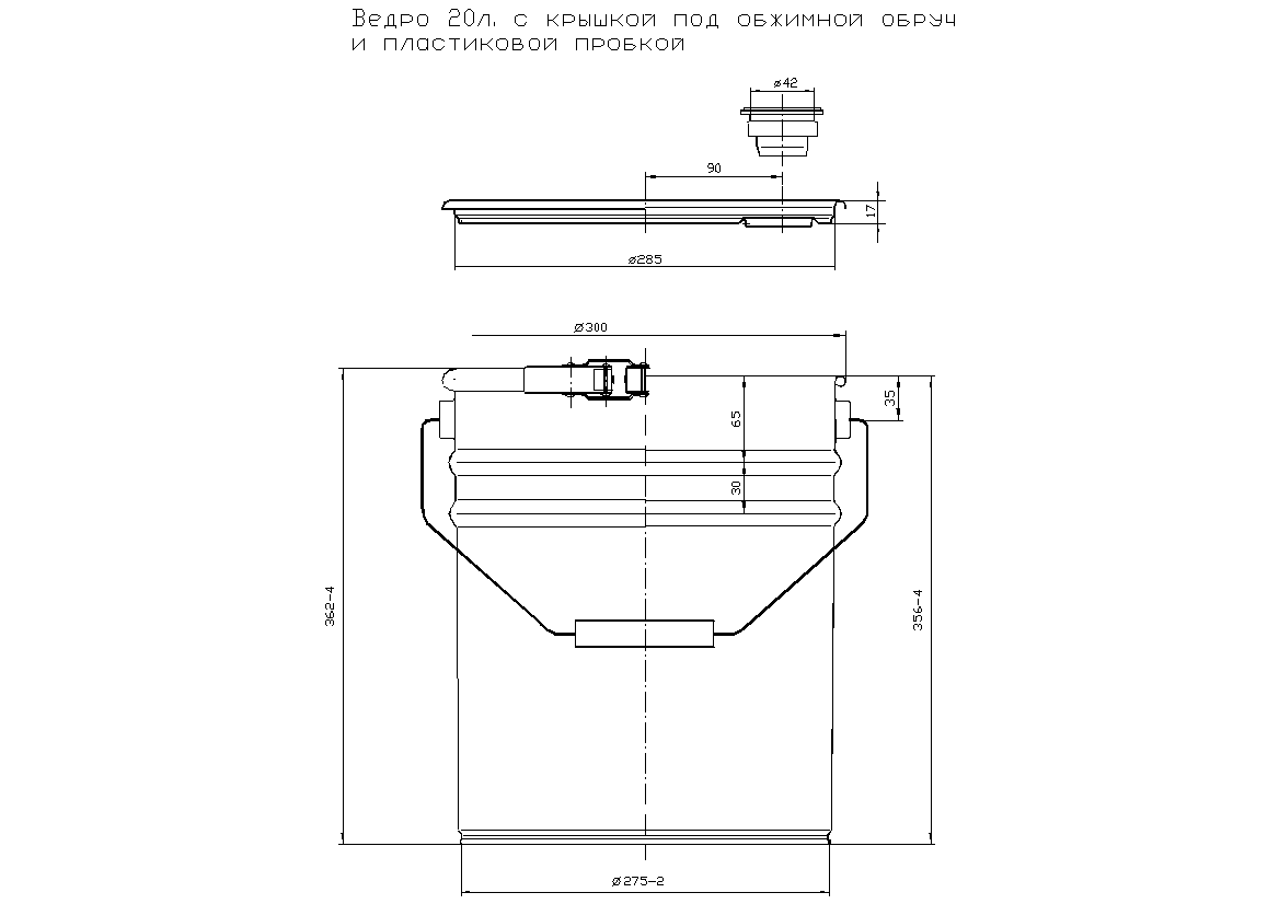 Ведро с крышкой под обжимной обруч и пластиковой пробкой