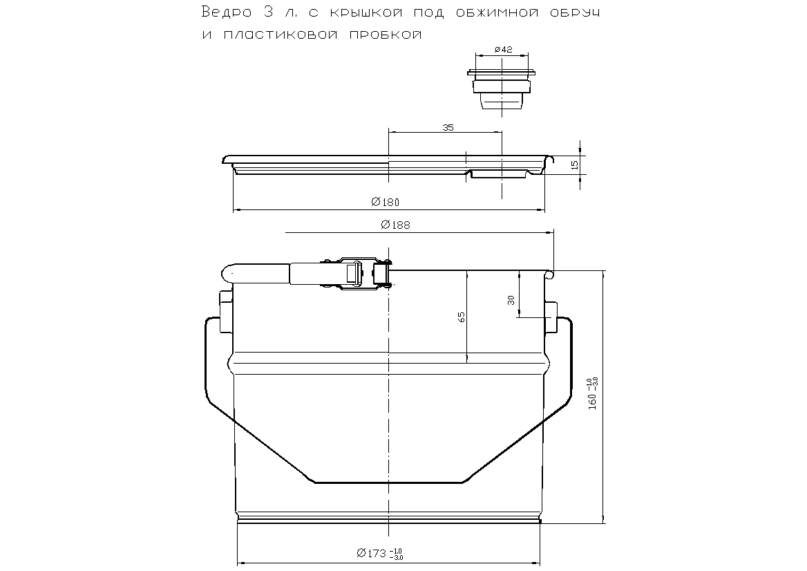 Жестяное ведро с крышкой под обжимной обруч и пластиковой пробкой (3 л)